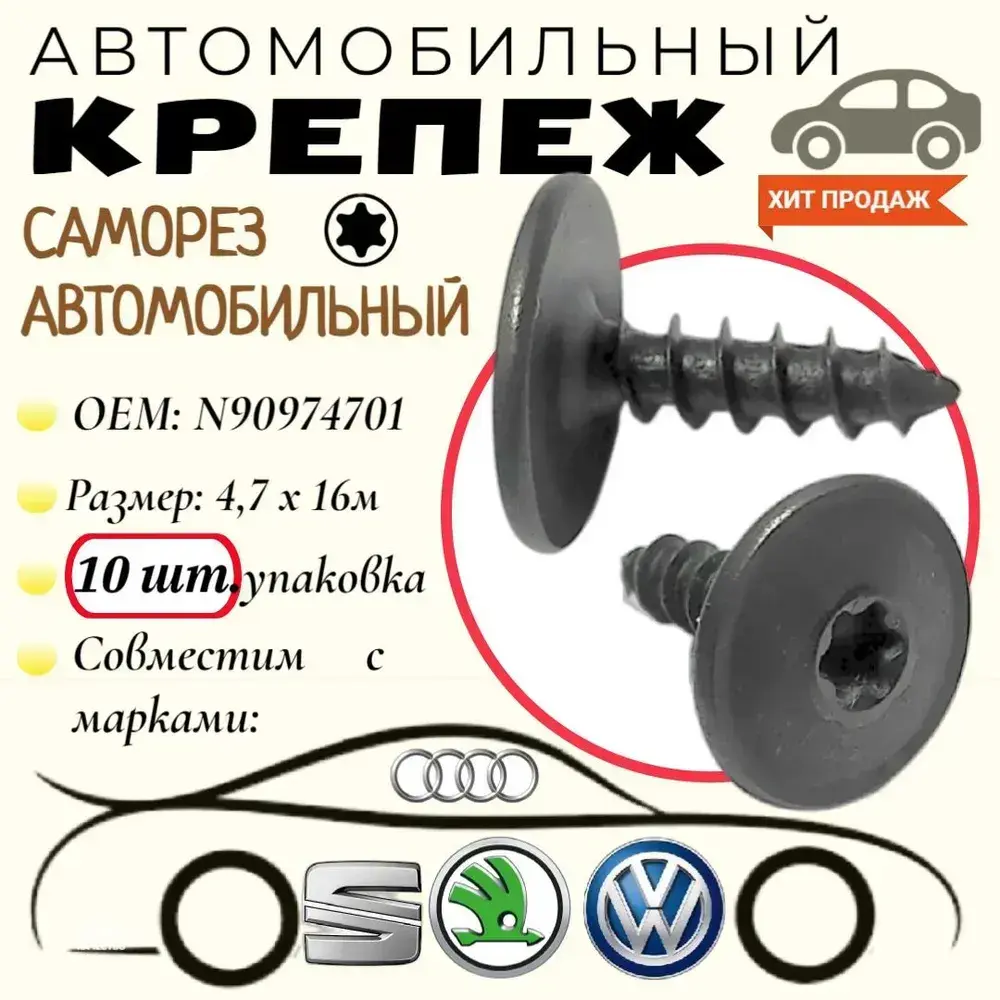 10шт. Саморез для автомобилей VAG / VW / Audi (OEM: N90974701). Черный. 4,7х16мм. Крепеж для автомобилей.