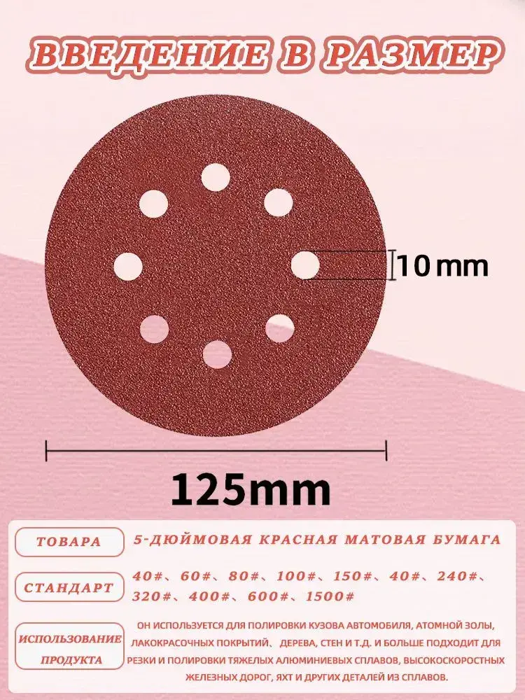 150 шт Шлифовальный круг (диск) 125 мм, P40 P60 P80 P100 P150 P240 P320 P400 P600 P1500