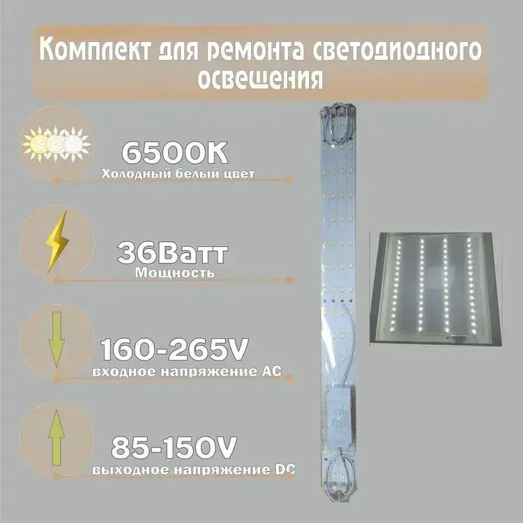 1шт. Комплект для ремонта светодиодного освещения 36 Вт 4 модуля и драйвер на магнитах