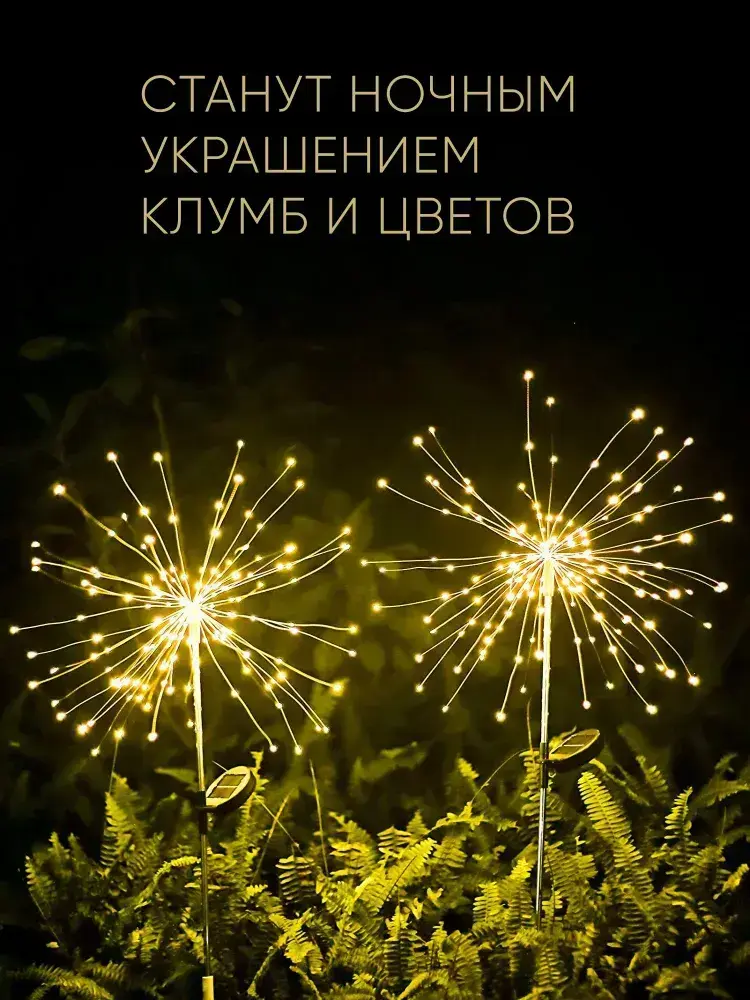 2 шт. Декоративный садовый уличный светильник по 200 ламп на солнечной батарее "Фонарик Фейерверк"