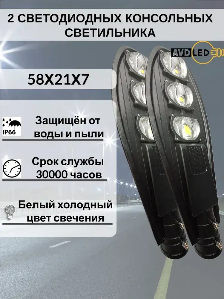 2 Уличных светодиодных консольных светильника линзового типа 150Вт