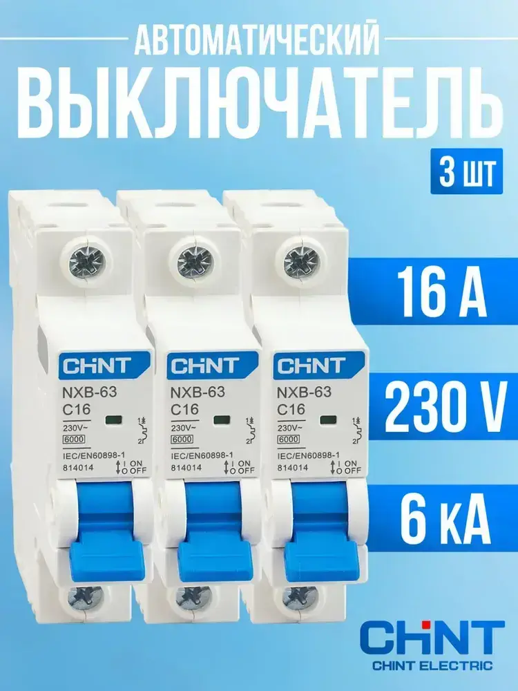 3 шт. Автоматический выключатель CHINT 1P (C) 6kA 16 А
