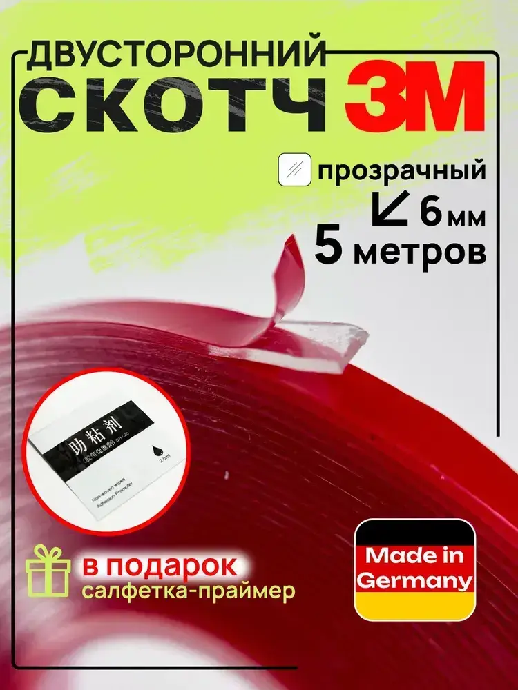 3M Клейкая лента 6 мм 5 м, 1 шт
