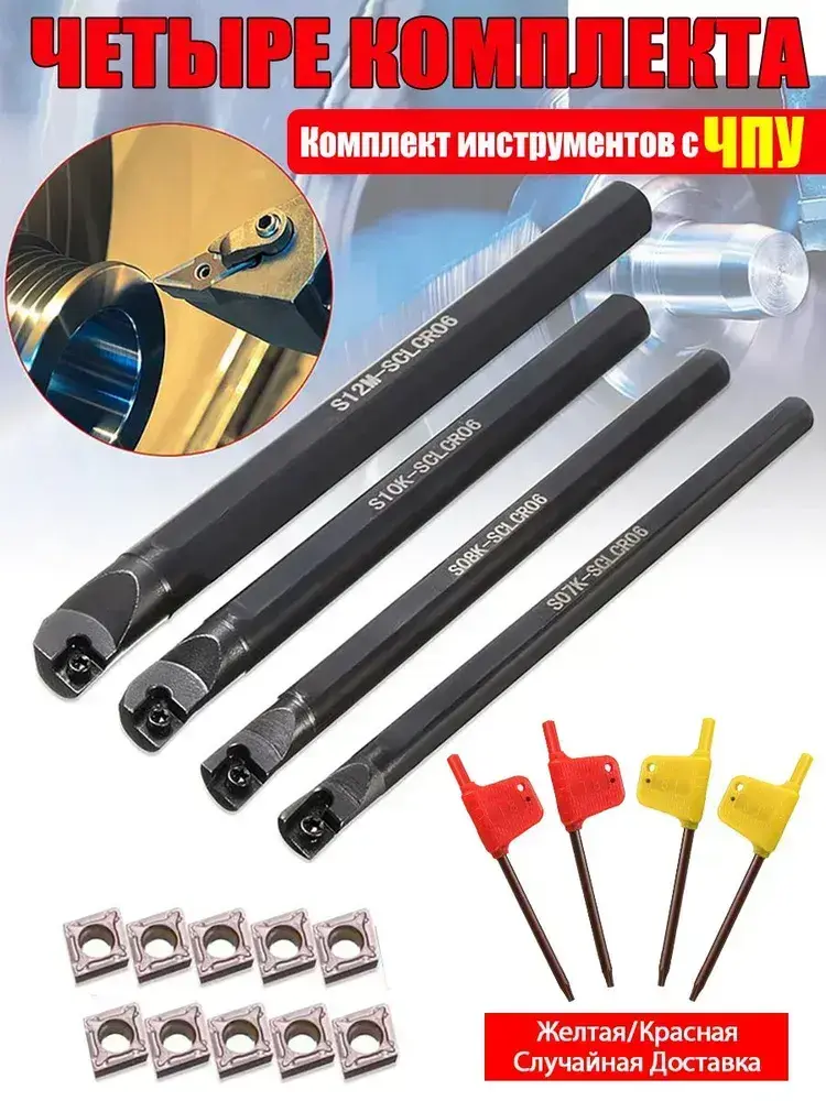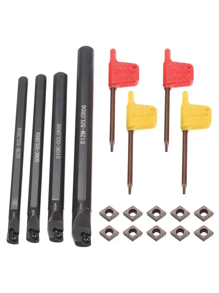 4 комплекта держателей токарного станка SCLCR 7/8/10/12 мм + 10 шт. CCMT 0602 набор держателей инструмента для токарных станков