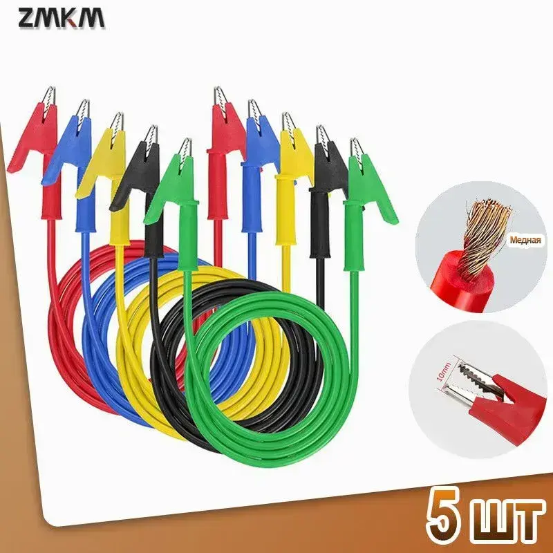 5 шт. двусторонних зажимов типа крокодил, кабель для измерительных проводов 15 А с изоляционными зажимами