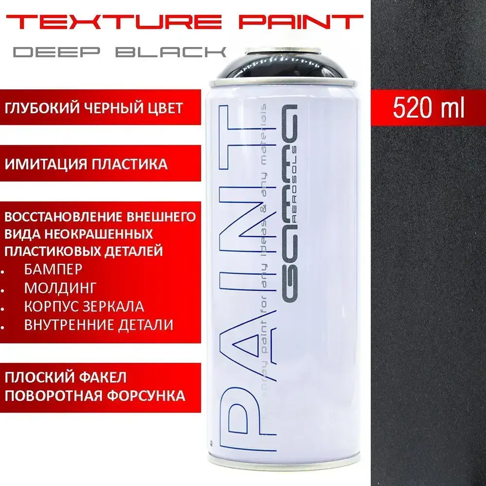 520мл Текстурная акриловая черная краска / имитация пластика / Gamma Paint