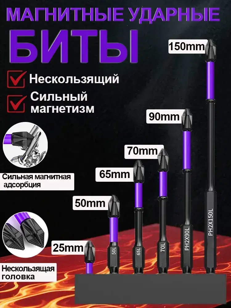 6шт,биты для шуруповертов магнитные/набор бит для шуруповерта/Биты торсионные ударные