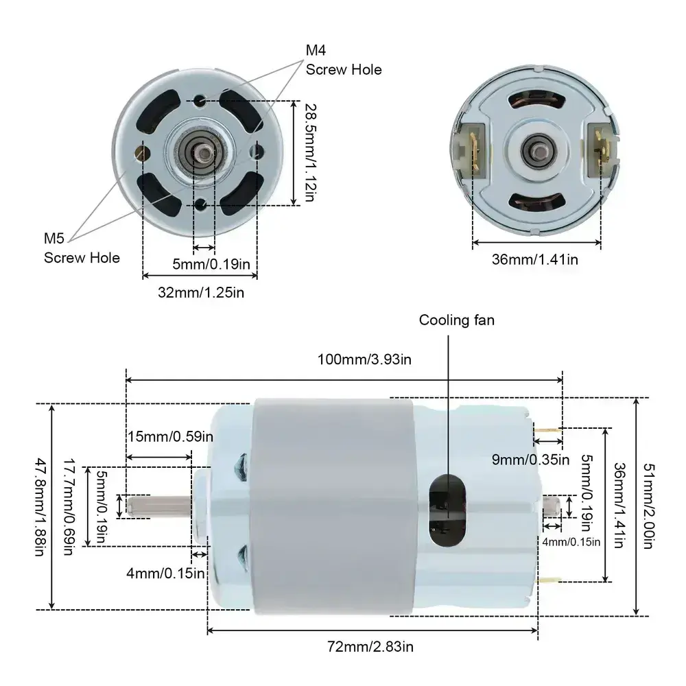 895 беззубчатый DC Motor 12-24V Высокий крутящий момент Регулируемый для электрического инструмента / DIY Небольшая дрель с двойным шарикоподшипником