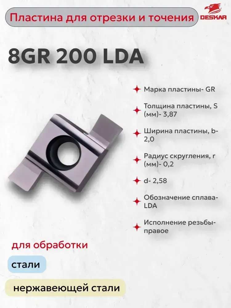 8GR 200 LDA пластина отрезная, канавочная (1 шт.) DESKAR