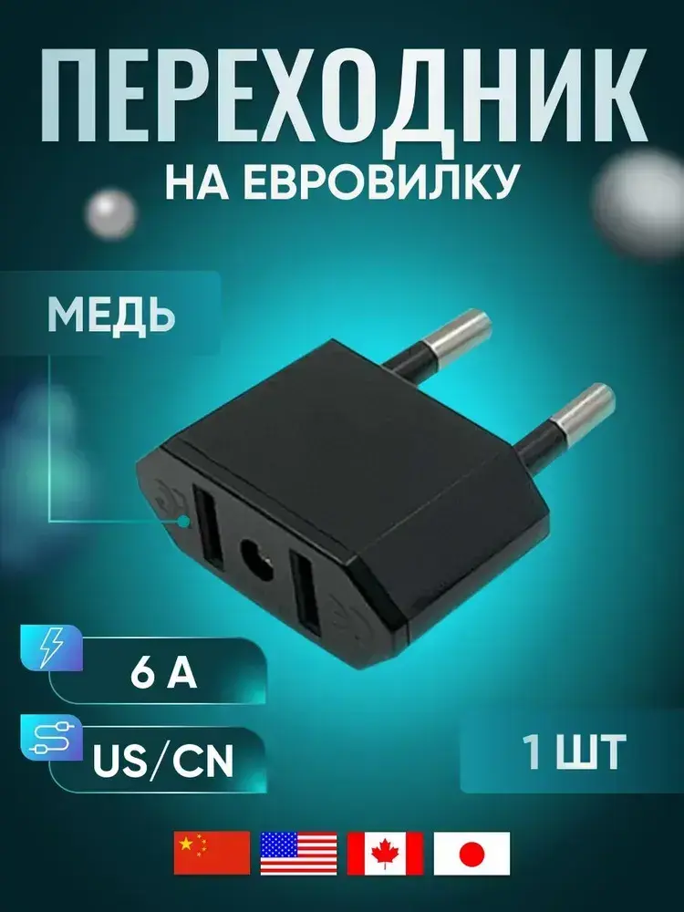 Адаптер переходник черный универсальный на евровилку, на евро розетку, для американской, китайской вилки