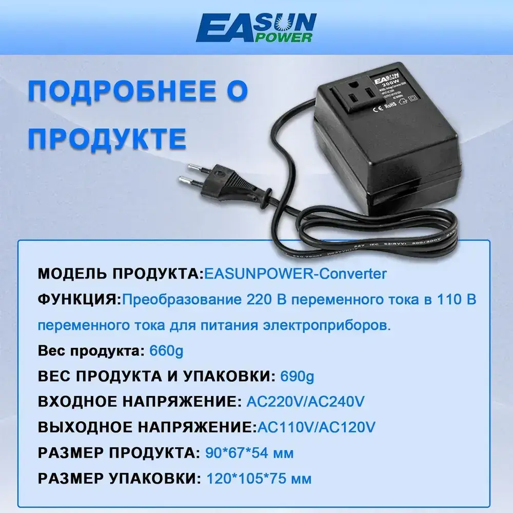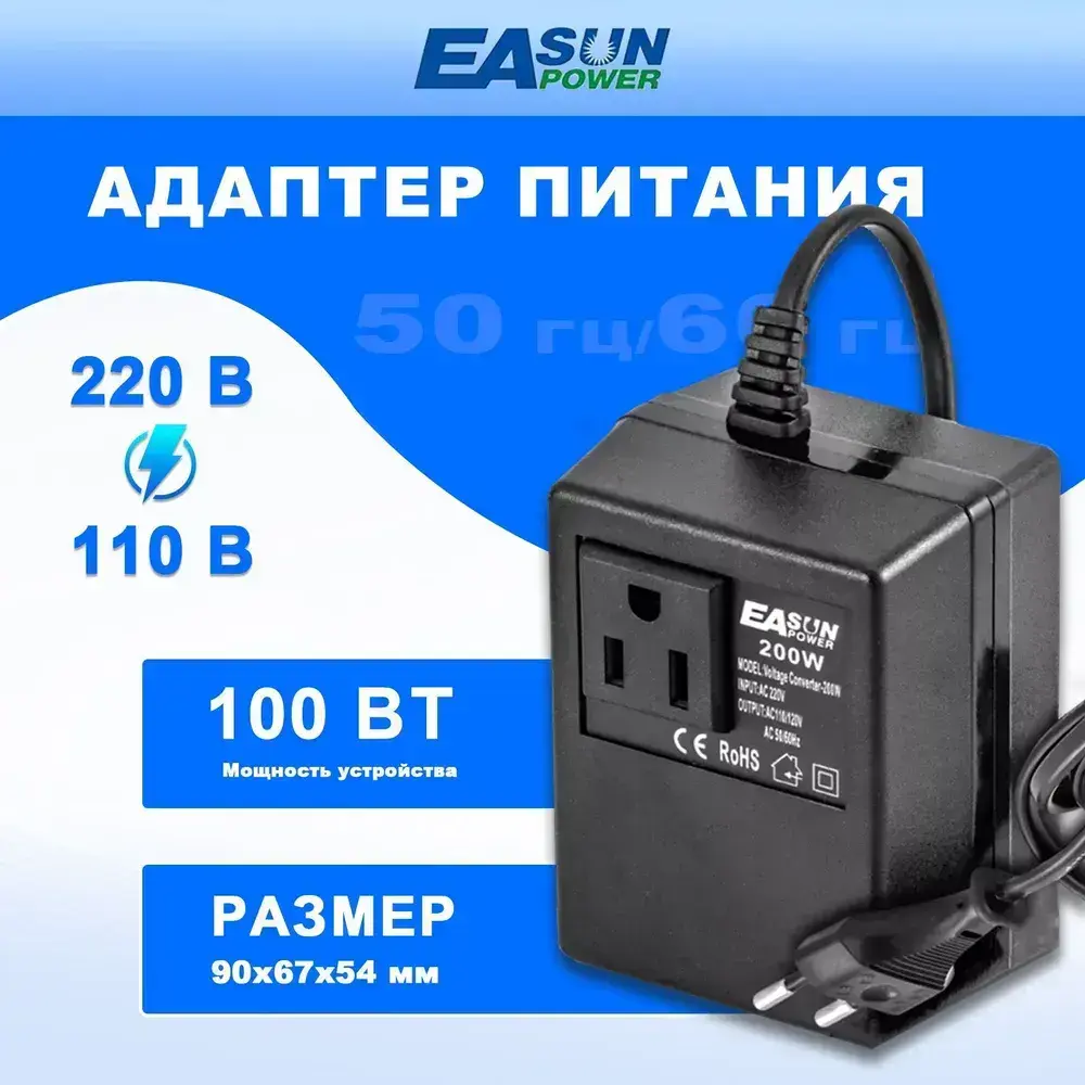 Адаптер питания 220/110В. Подключение приборов, работающих от 110В к сети 220В. Мощность до 100Вт.