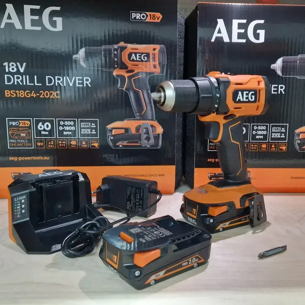 AEG Дрель шуруповерт 18В (c 2 аккумуляторами, зарядным устройством и кейсом в комплекте) BS18G4-202C, щеточный, аккумуляторный, 4935478630