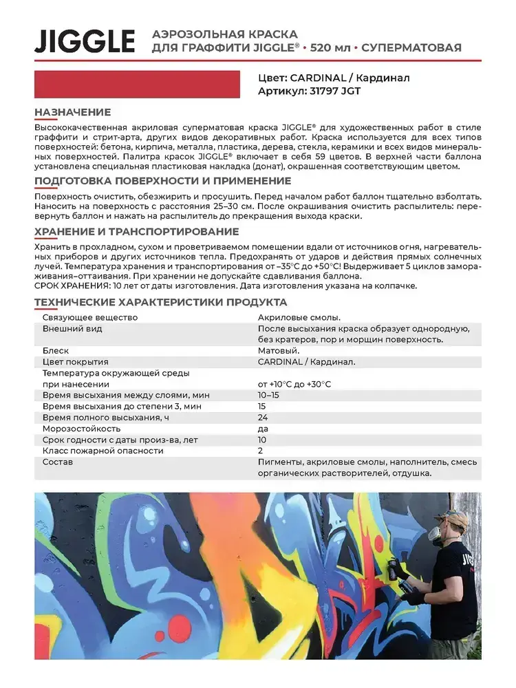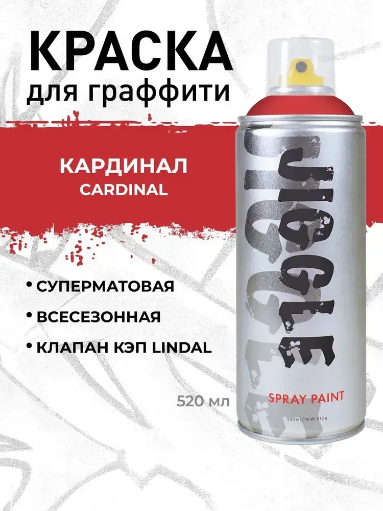 Аэрозольная краска для граффити в баллончике JIGGLE PRO суперматовая, 520 мл, CARDINAL / Кардинал