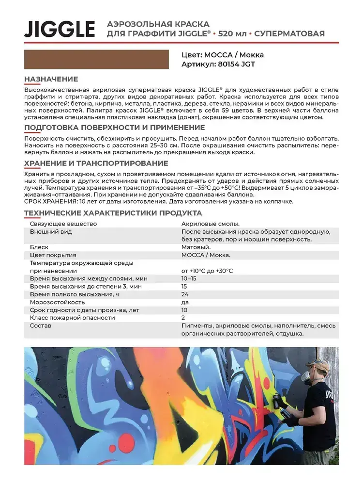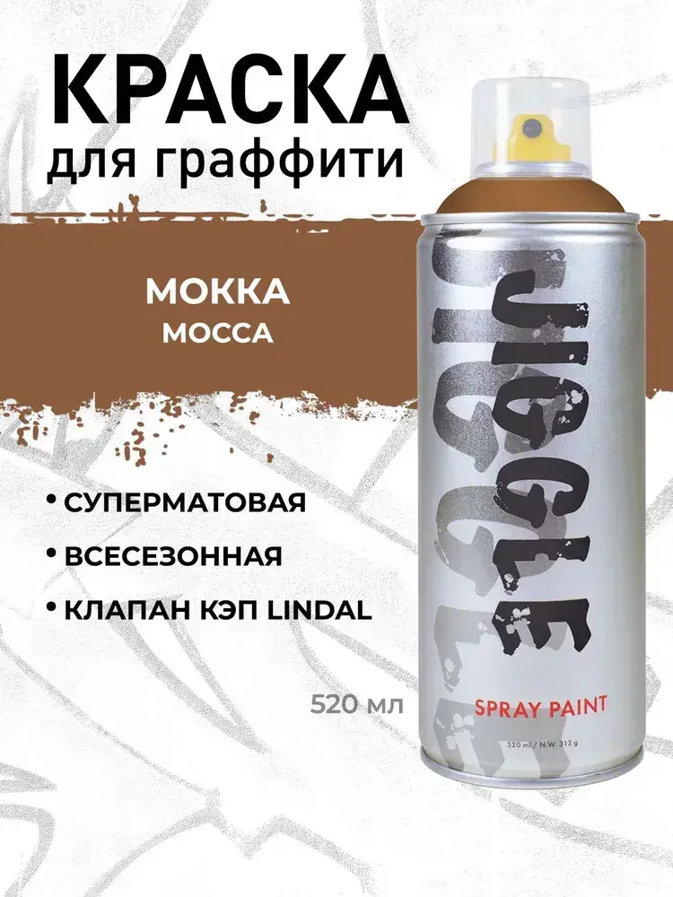 Аэрозольная краска для граффити в баллончике JIGGLE PRO суперматовая, 520 мл, MOCCA / Мокка