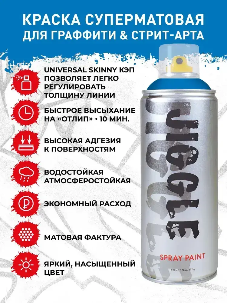 Аэрозольная краска для граффити в баллончике JIGGLE PRO суперматовая, 520 мл, OCEAN / Океан