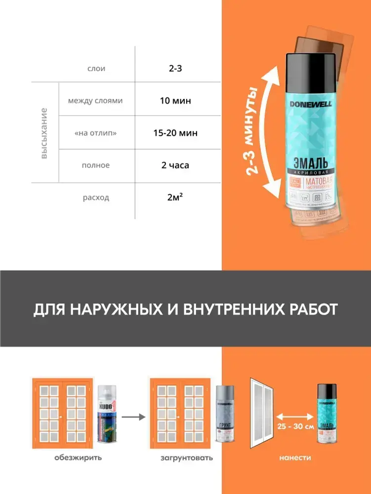 Аэрозольная краска DONEWELL "Эмаль универсальная быстросохнущая (RAL) в баллончике", Акриловая, Матовая, 0.52 л, Черная RAL 9005