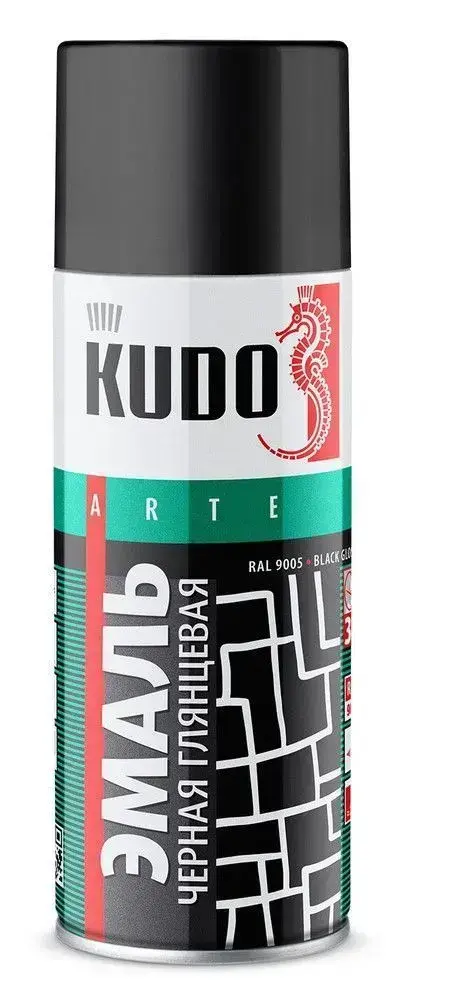 Аэрозольная краска KUDO "Эмаль универсальная высокопрочная RAL в баллончике", Алкидная, Глянцевая, 0.52 л, Чёрная глянцевая RAL 9005, KU-1002