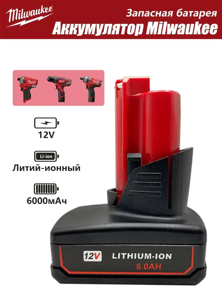 Аккумулятор Milwaukee M12,12V 6.0А.ч,аккумулятор для шуруповерта милвоки 48-11-2460