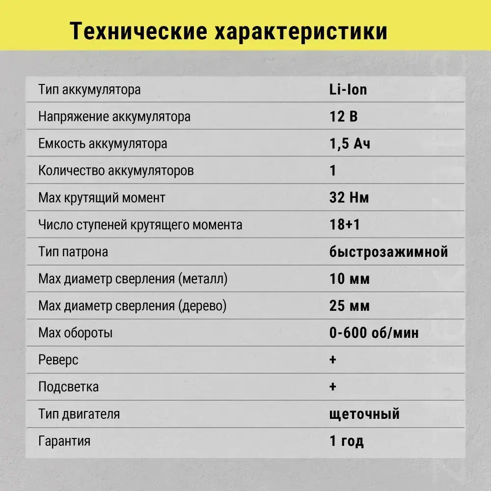 Аккумуляторная дрель-шуруповёрт ZITREK Green12 (12В, 32Нм, 1х1,5 Ач, Li-ion, бита, з/у)