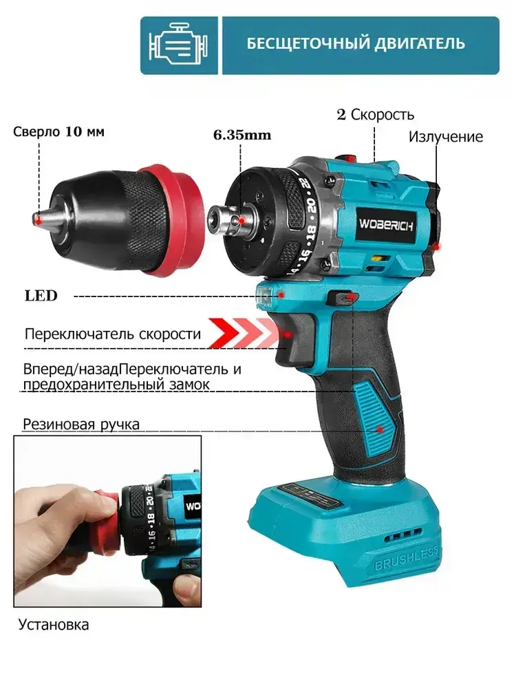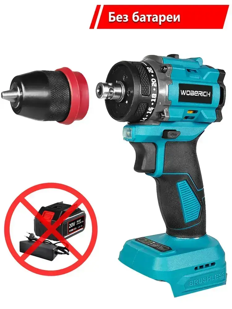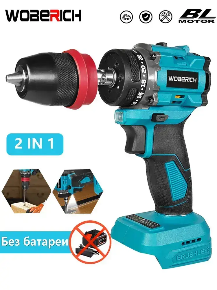 Аккумуляторная электрическая дрель 2 в 1, патрон 10 мм, бесщеточный шуруповерт,0 акб