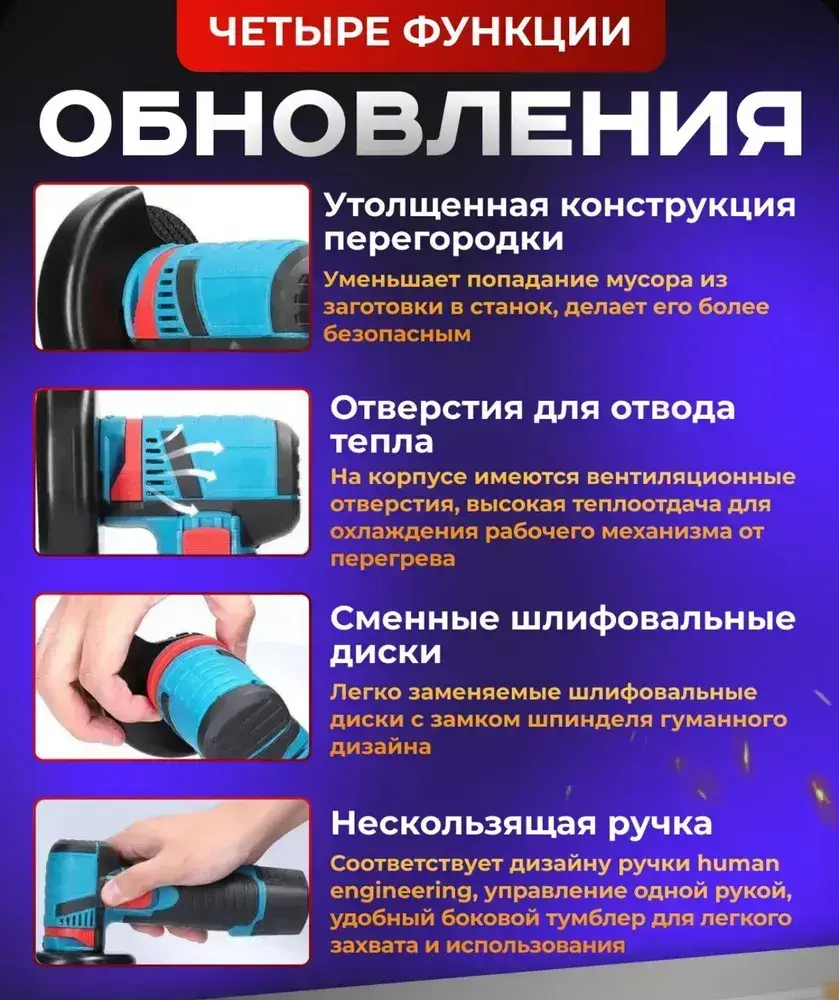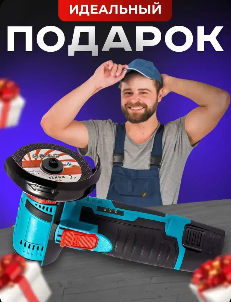 Аккумуляторная мини болгарка. УШМ с 2 АКБ, диск 76 мм. 18V