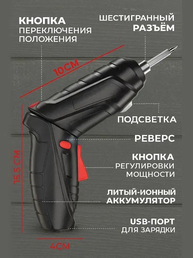 Аккумуляторная отвертка, Электрическая отвертка-трансформер с зарядкой и насадкой в комплекте
