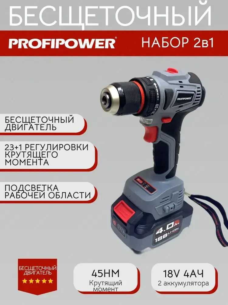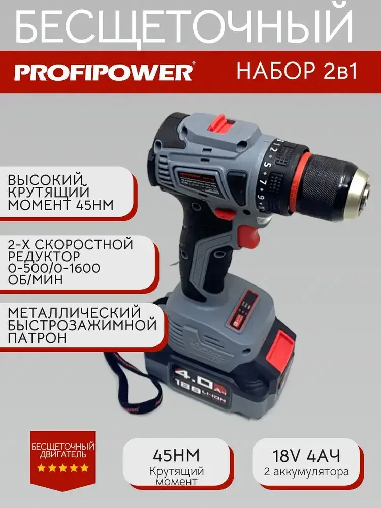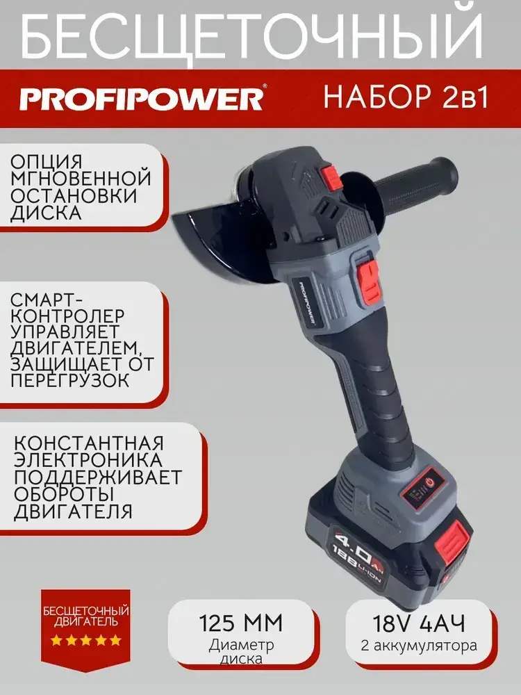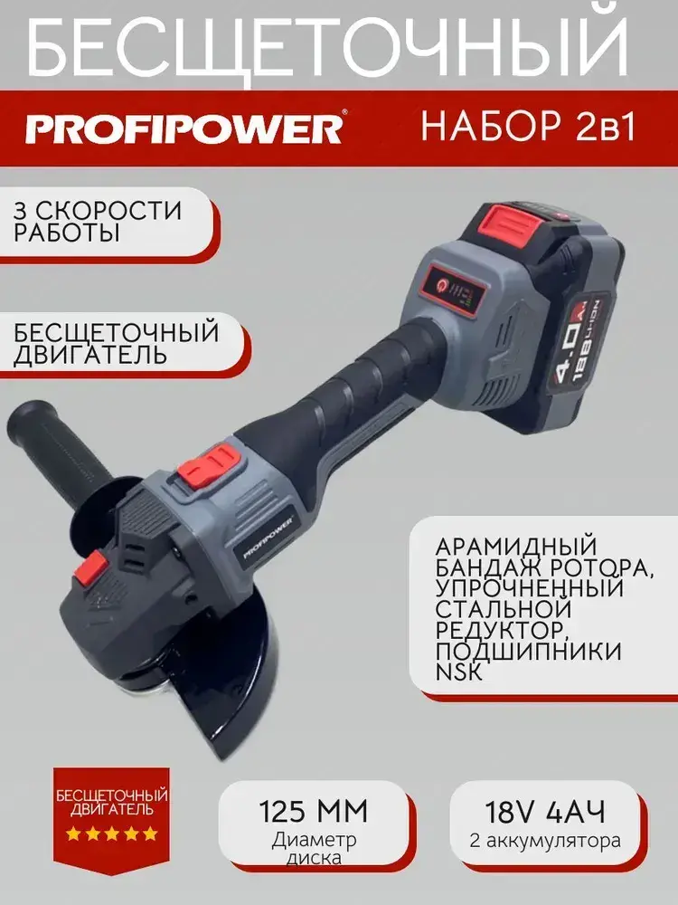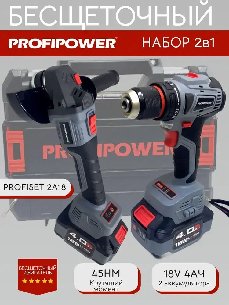 Аккумуляторный набор Profipower бесщеточный Шуруповерт 45Нм + УШМ 125мм