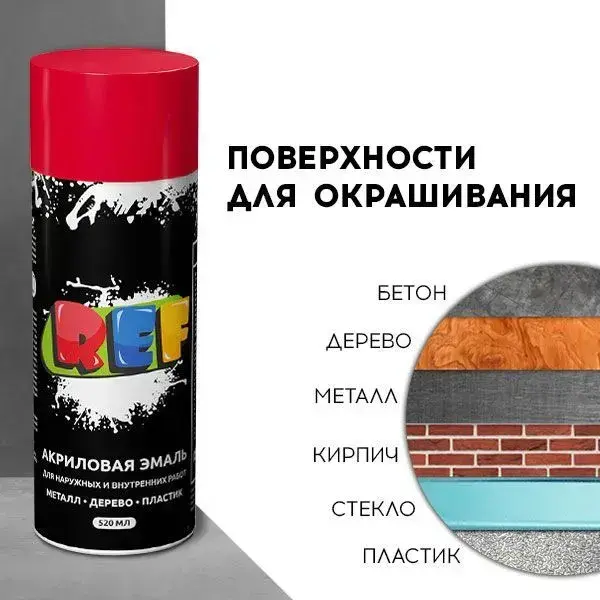 Акриловая краска аэрозольная 520 мл АЛЫЙ ГЛЯНЦЕВЫЙ, быстросохнущая, универсальная / REF / эмаль в баллончике, для декора, мебели, дерева, металла, стен