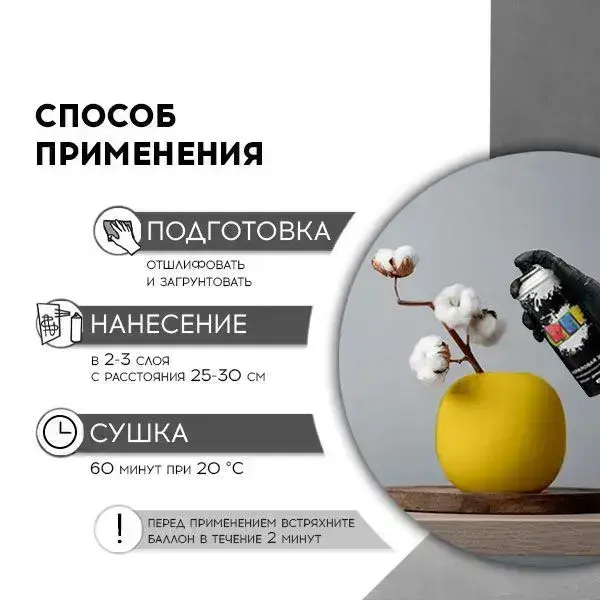 Акриловая краска аэрозольная 520 мл ЛИМОННО-ЖЕЛТЫЙ ГЛЯНЦЕВЫЙ, быстросохнущая, универсальная / REF / эмаль в баллончике, для декора, мебели, дерева, металла, стен