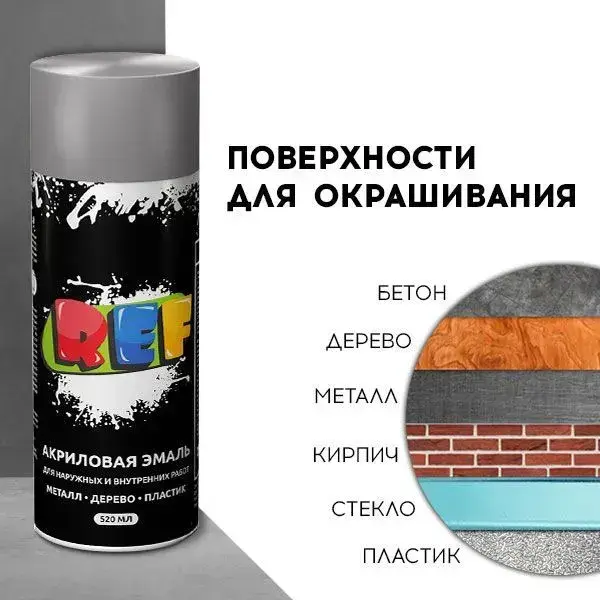 Акриловая краска аэрозольная 520 мл СЕРЕБРЯНЫЙ металлик ГЛЯНЦЕВАЯ, быстросохнущая, универсальная / REF / эмаль в баллончике, для декора, мебели, дерева, металла, стен