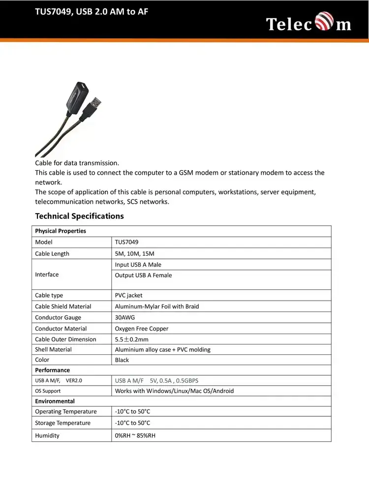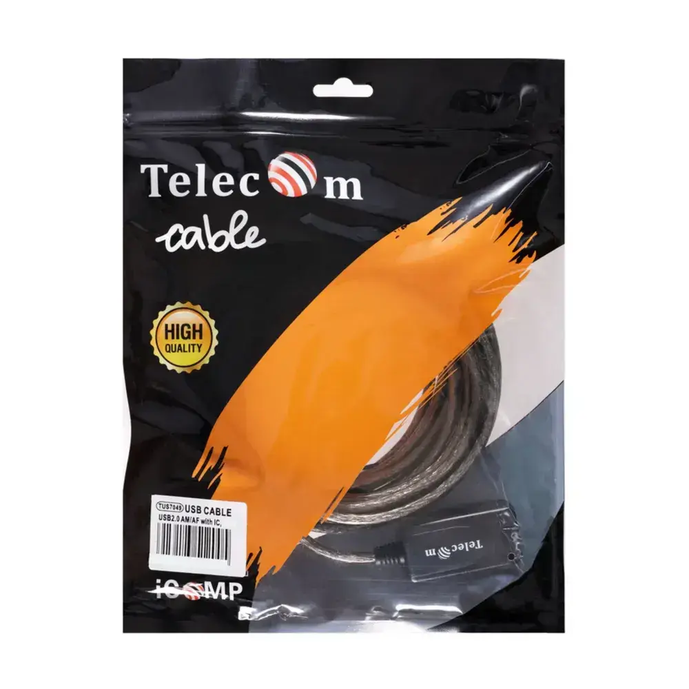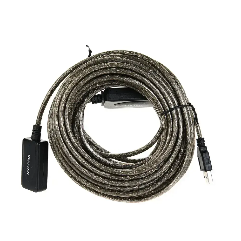 Активный удлинитель USB 2.0 A TELECOM 15 метров кабель прозрачная оплётка провод (TUS7049-15M)