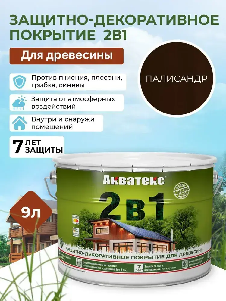 АКВАТЕКС 2 в 1 защитно-декоративное покрытие для дерева, алкидное, полуматовое, лессирующее, палисандр, 9 л