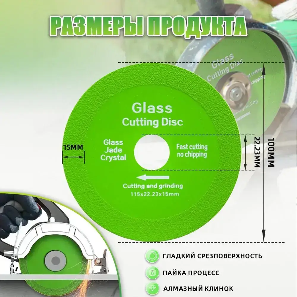 Алмазный отрезной диск для стекла 100 мм, 100*22.23*15mm/4 шт