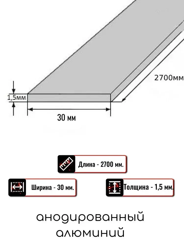 Алюминиевая полоса декоративный молдинг DIELE 30х1,5мм черный/мат 2,7м.