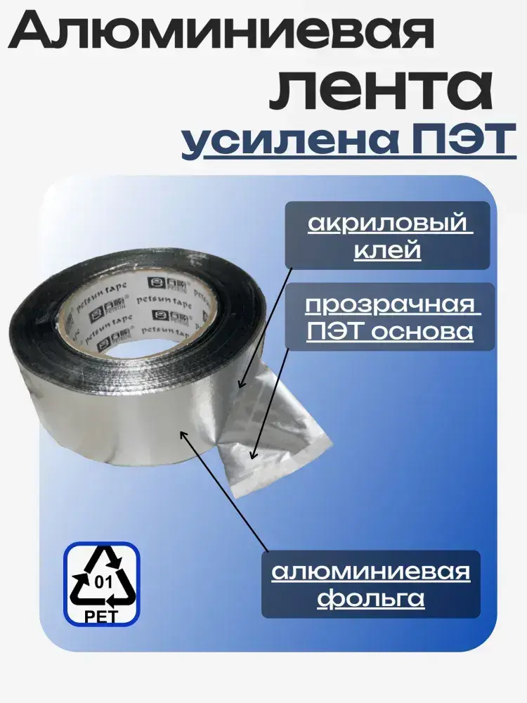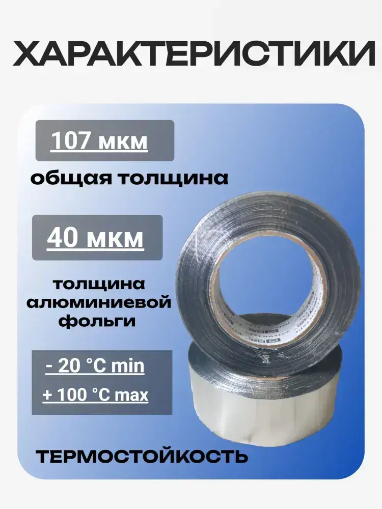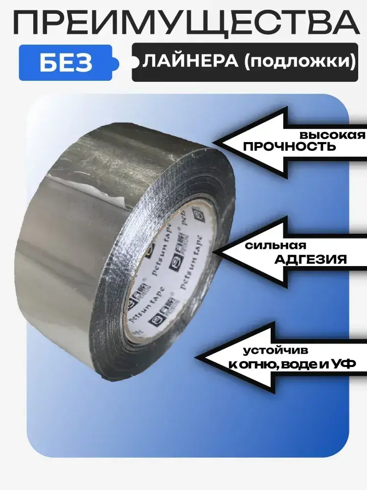 Алюминиевый скотч 50 мм х 100 метров, клейкая алюминиевая лента на ПЭТ основе