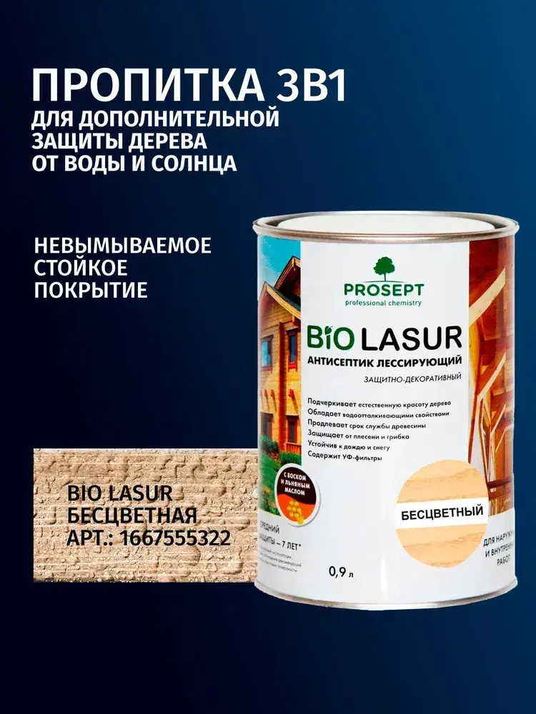 Антисептик для дерева невымываемый зеленый для наружных работ PROSEPT ECO ULTRA обработка древесины от гниения 10 л (арт. 017-10)