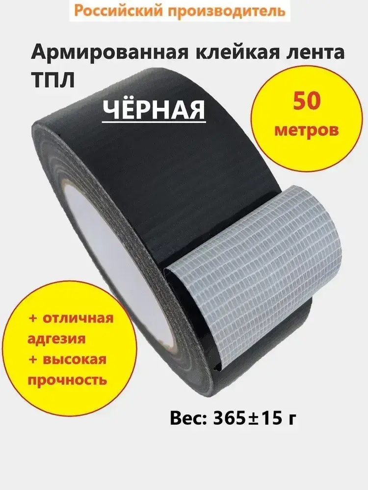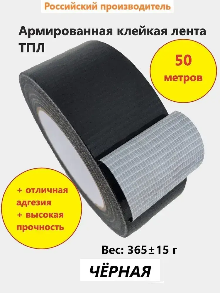 Армированный скотч НСТ ТПЛ-50мм*50м чёрный / влагостойкая армированная клейкая лента