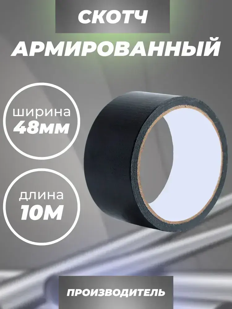 Армированный скотч Waldex Клейкая лента, 48мм*10м, черный, 1 шт.