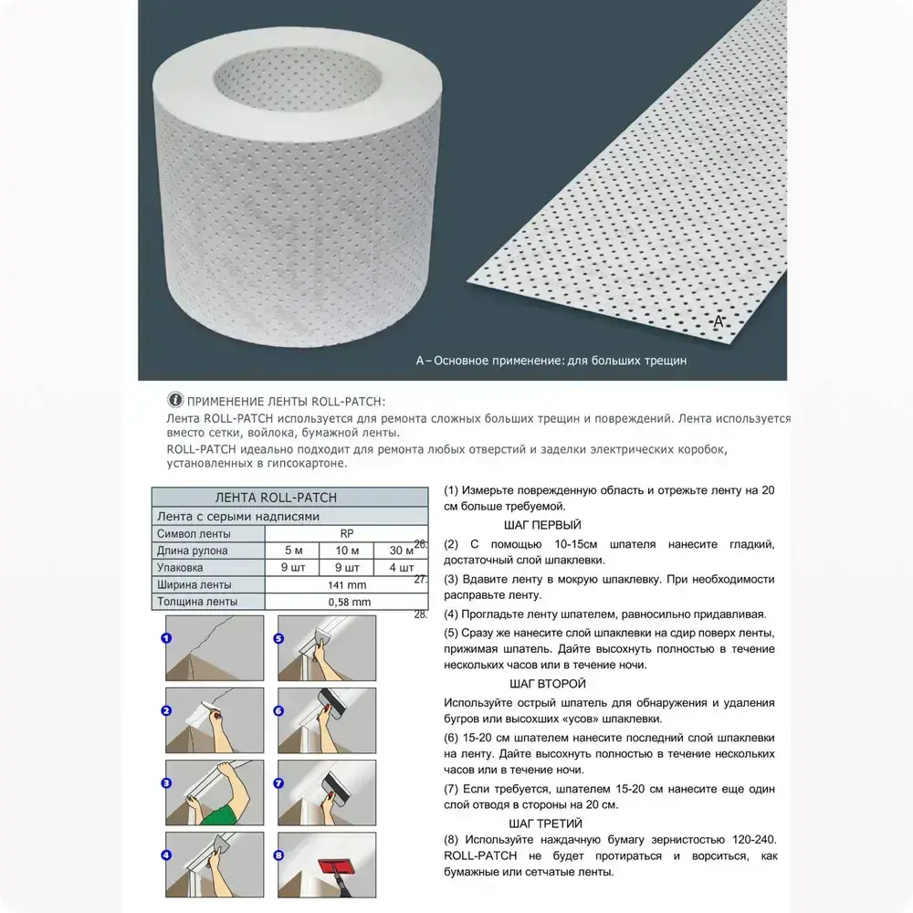 Армирующая лента STRAIT-FLEX Roll Patch (для заделки трещин и сколов), ширина 140мм, в рулоне 5 м