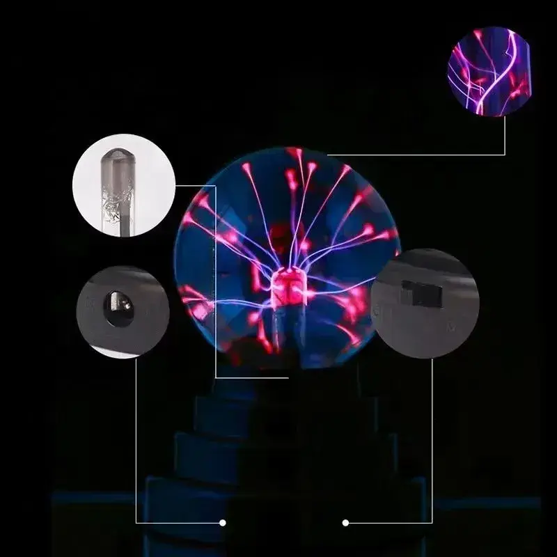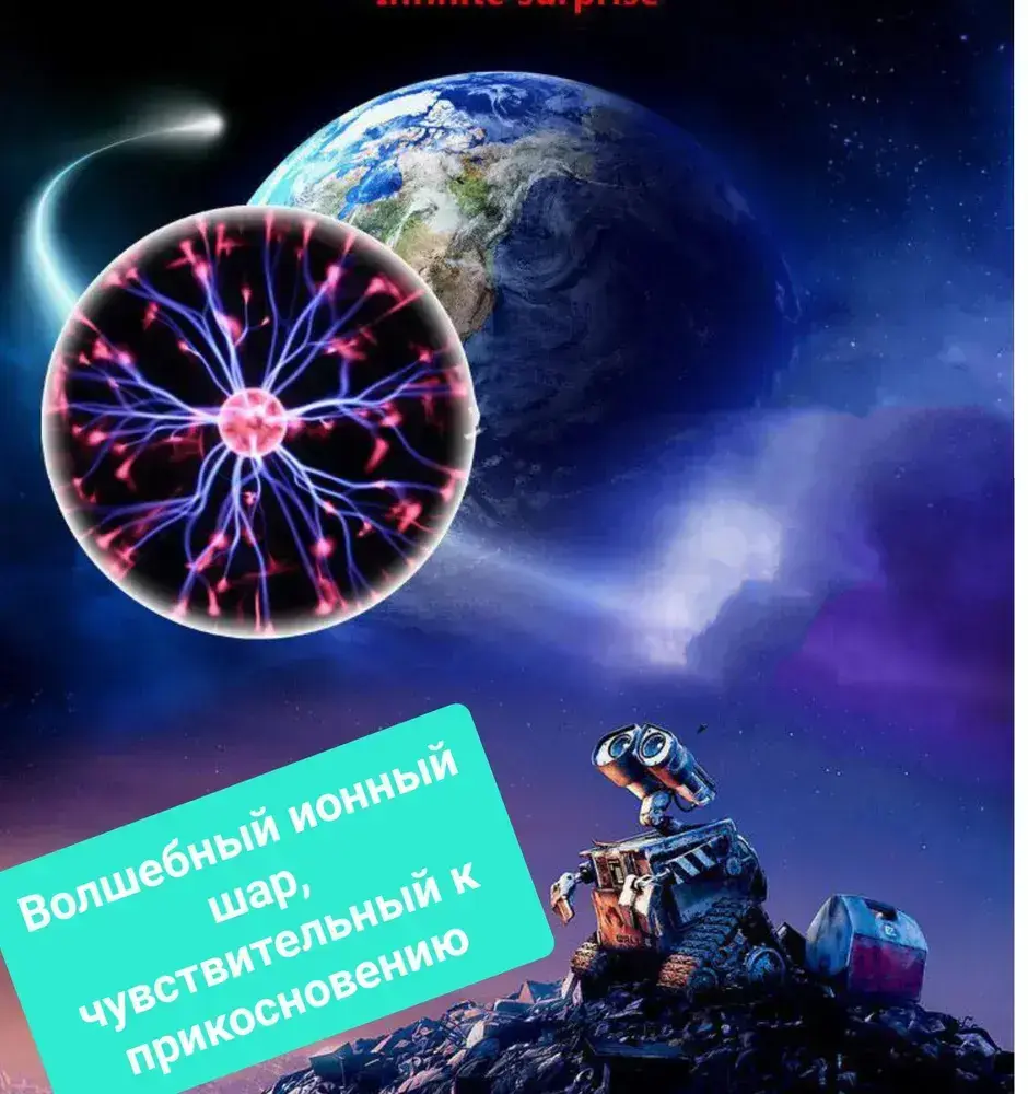 Ассорти товаров Плазменная лампа реагирующия на прикосновения "Магический шар с молниями", 8 см, черный