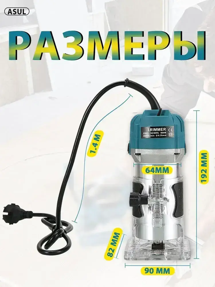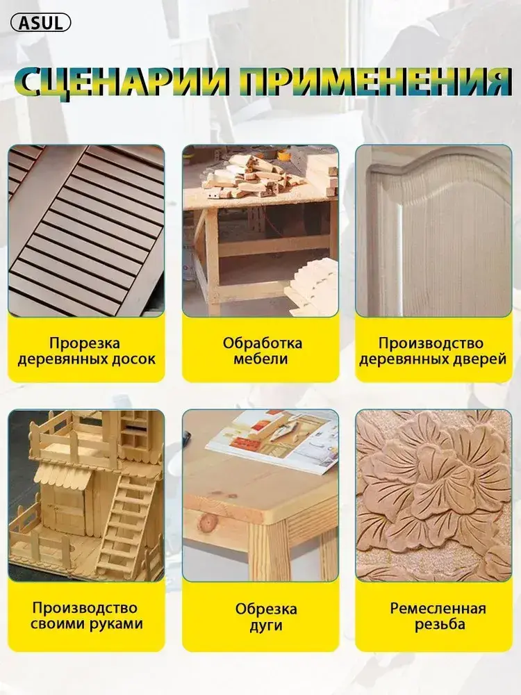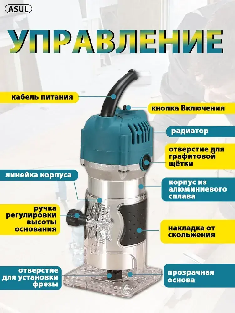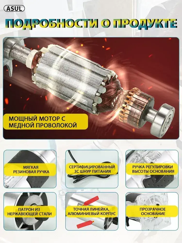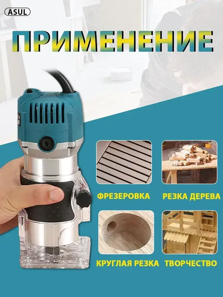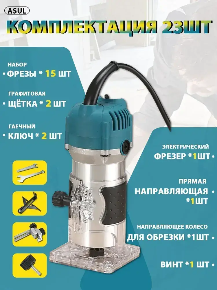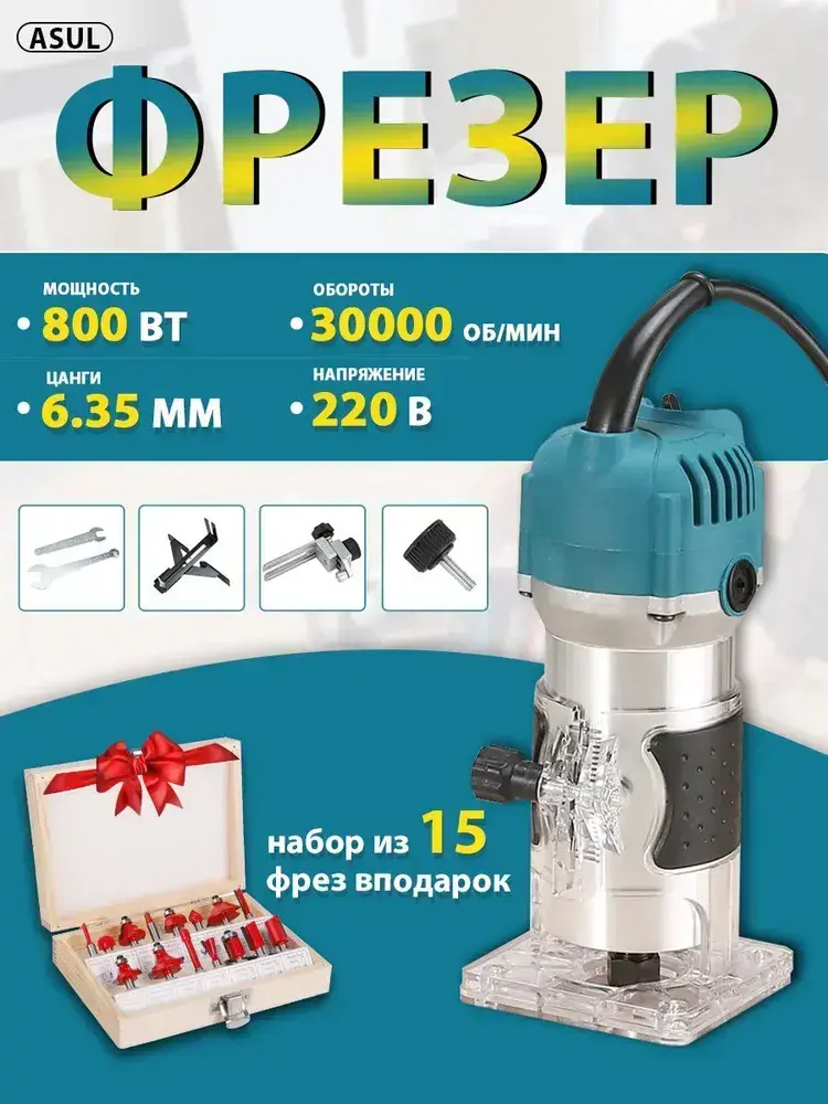 ASUL Фрезер по дереву электрический, 15 шт Набор фрез в подар