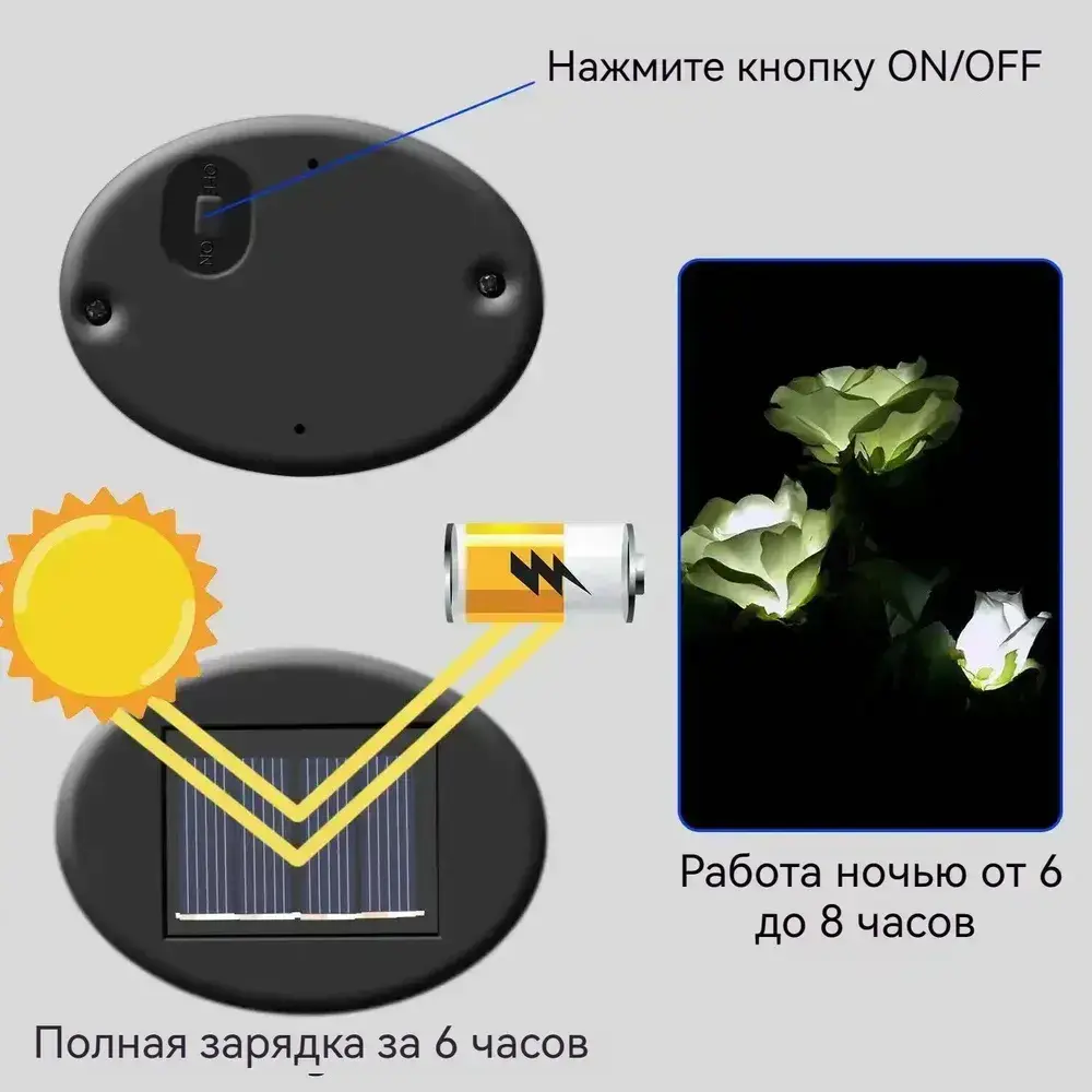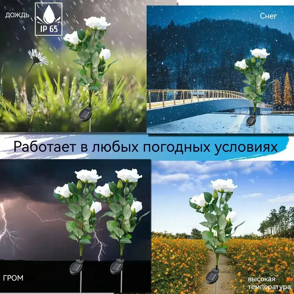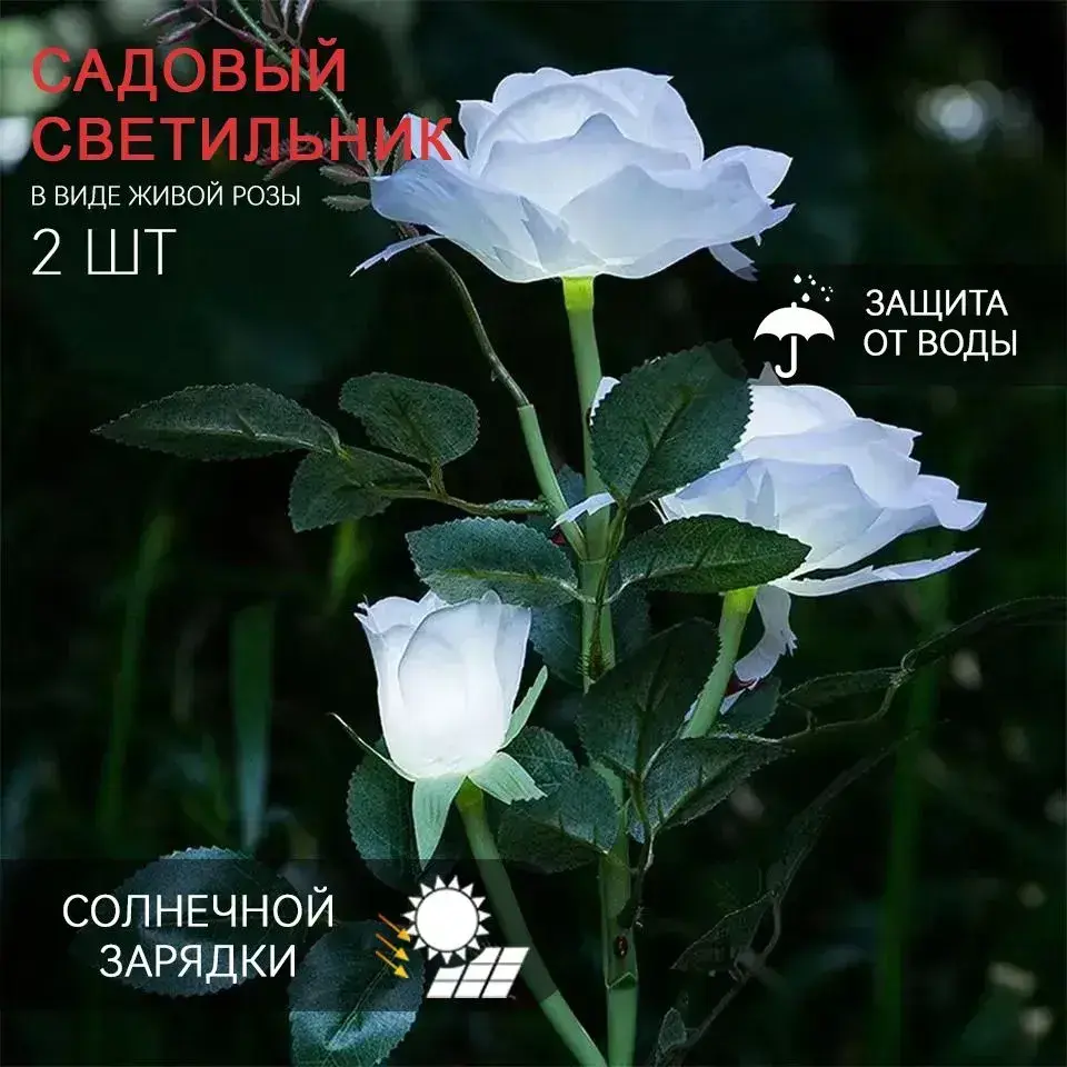 AUCKBY Набор садовых светильников на солнечных батареях 2ШТ, Роза теплый свет, для территории дома, дачи