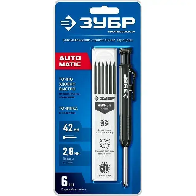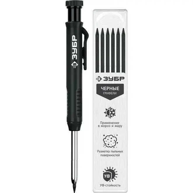 Автоматический строительный карандаш ЗУБР черный, HB, 6 сменных грифелей 06311-2