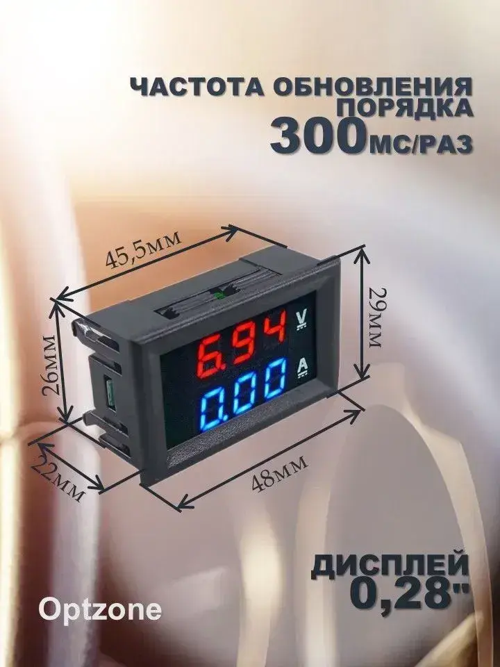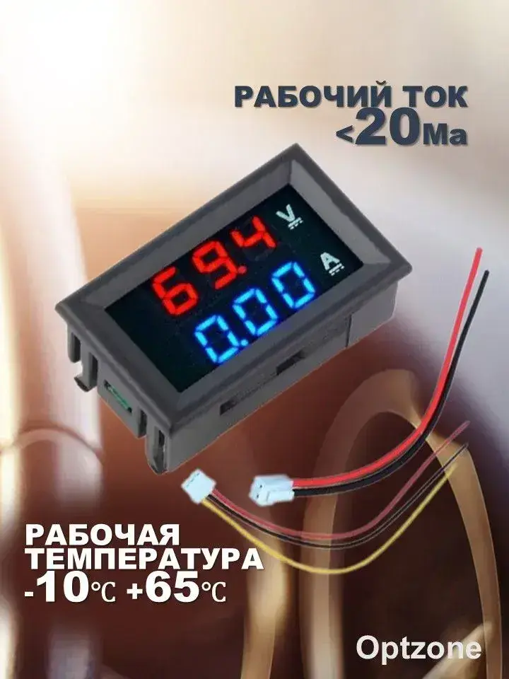 Автомобильный цифровой вольтметр амперметр DC 0-100V 0-10A / Вольтамперметр / OT-INM01