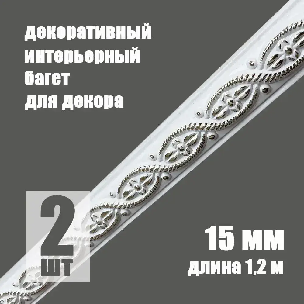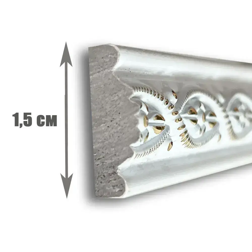 Багет интерьерный 2 шт. декоративный профиль 15*5*1200 Белый с золотом "Афины" (ПИ15А)