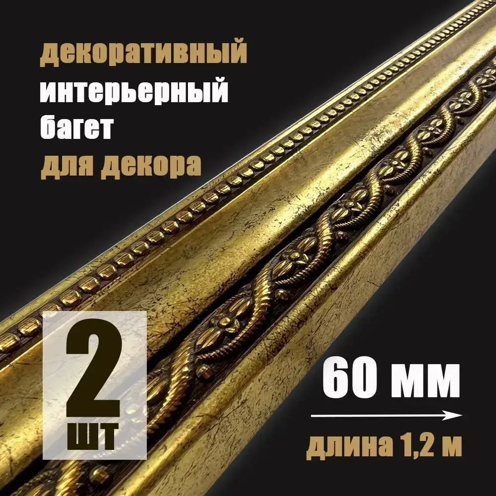Багет интерьерный 2 шт. декоративный профиль 60*20*1200 Золото с патиной "Лувр" (ПИ60Л)