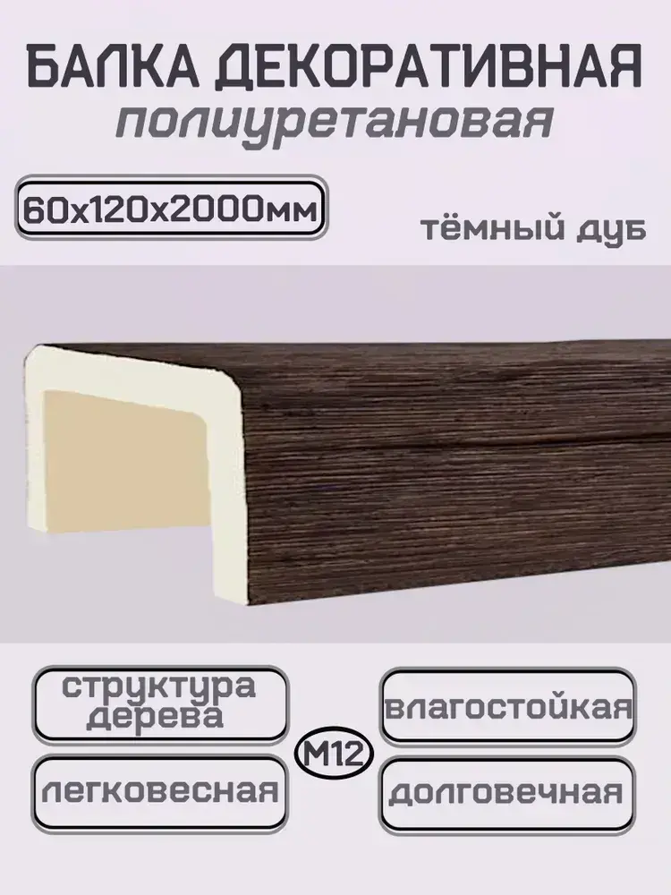 Балка потолочная из полиуретана Декоративная фальш балка 60ммх120ммх2000мм