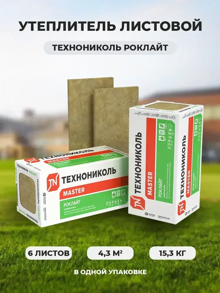 Базальтовый утеплитель ТехноНиколь Роклайт 1,2х0,6х0,1 м. 6 шт/уп