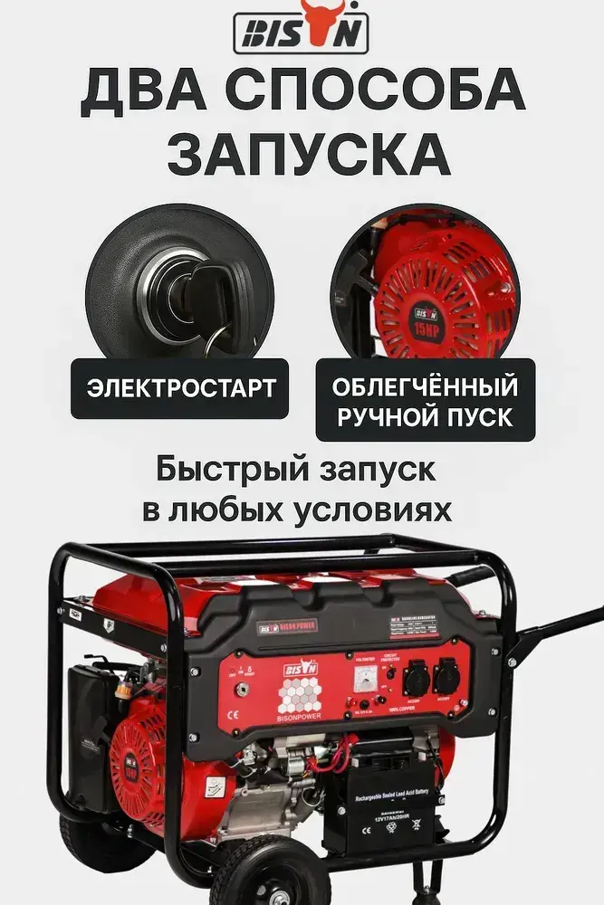 Бензиновый генератор электростанция 5.5кВт BISON BS6500EP с электростартером