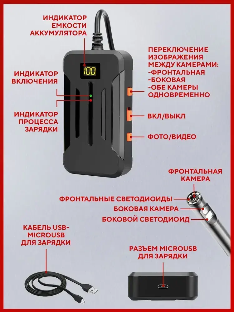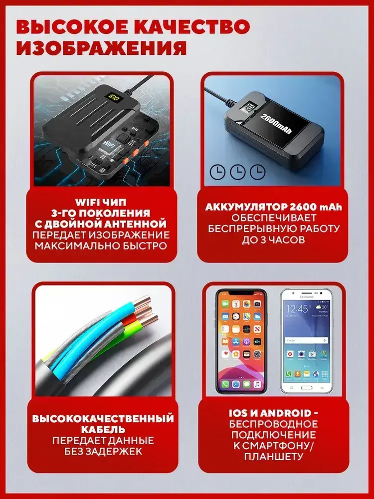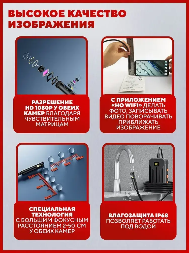 Беспроводной эндоскоп с двумя камерами, HD 1080p, 8 мм диаметр, влагозащитный, запись видео, совместим с iPhone и Android